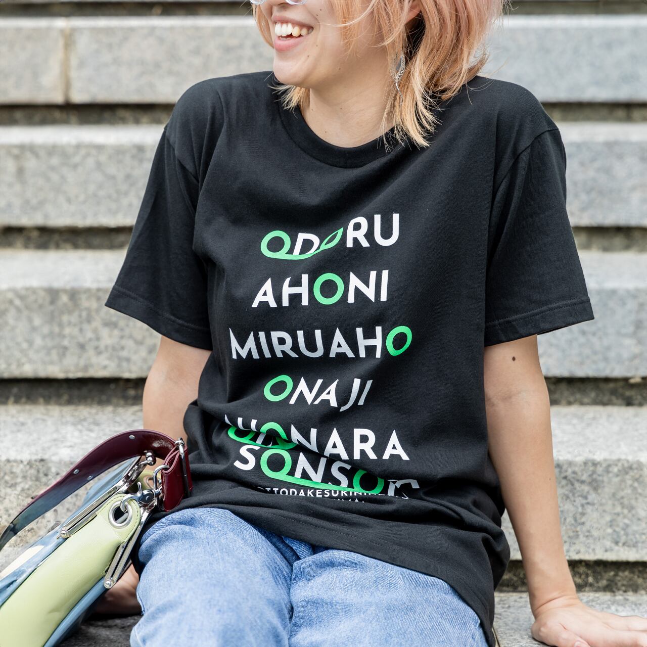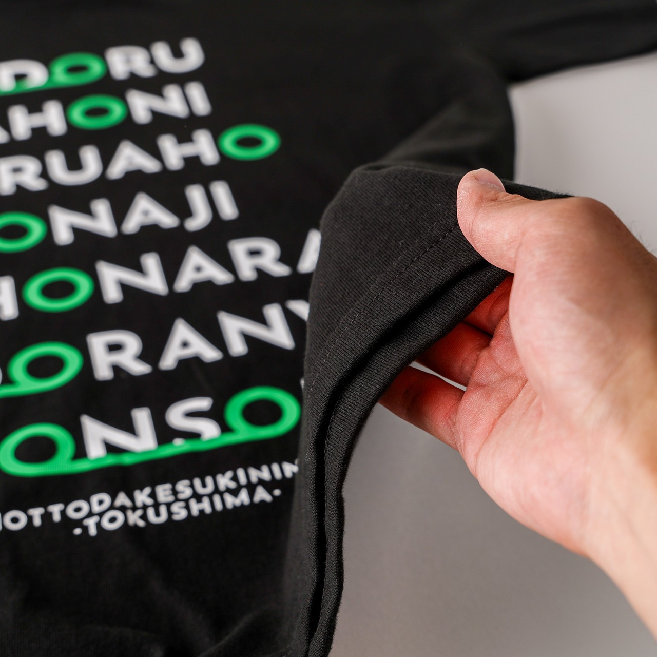 Tシャツの文字デザインは、アルファベットの『O』が丸い形をしていることから、『円』や『ご縁』を表現したデザインです。